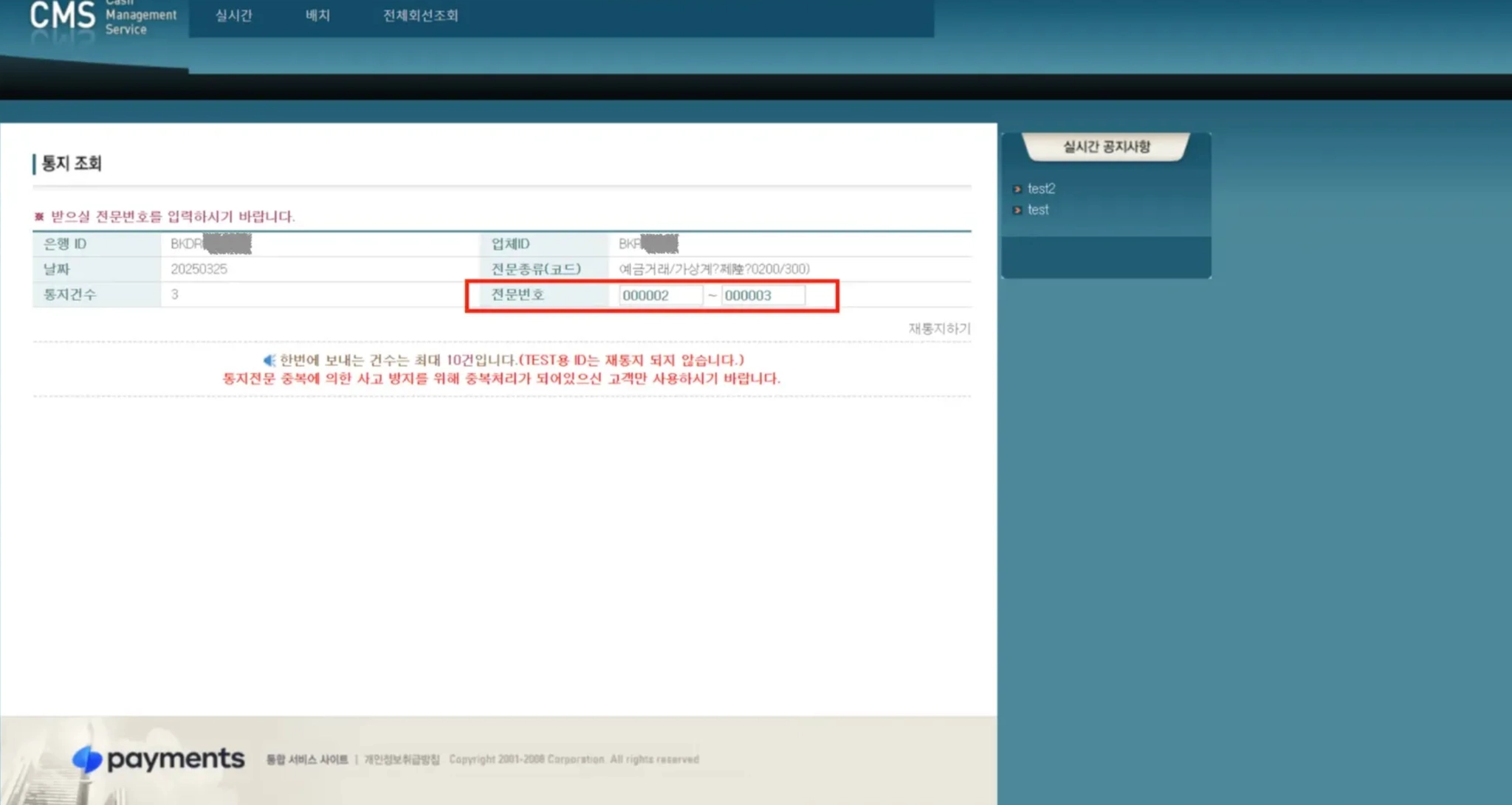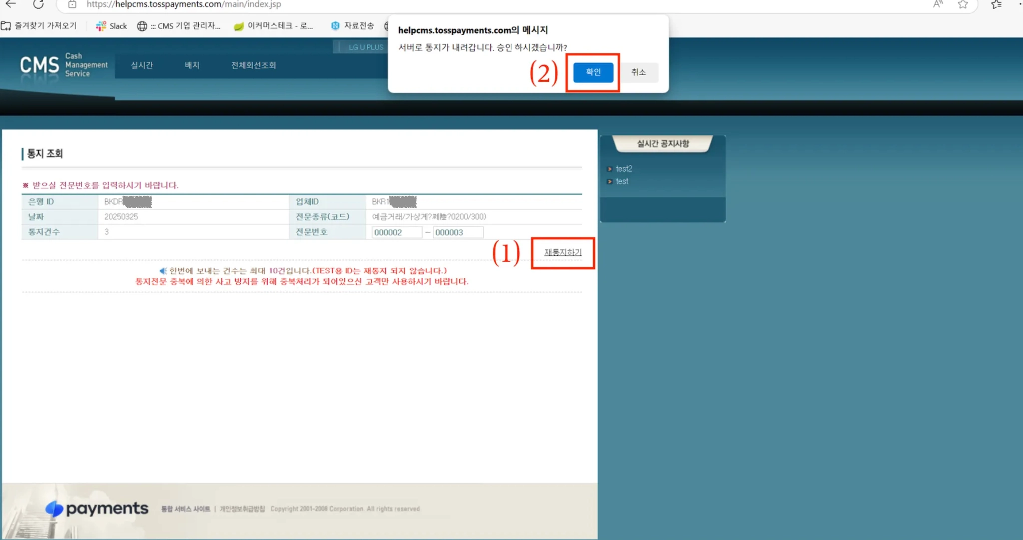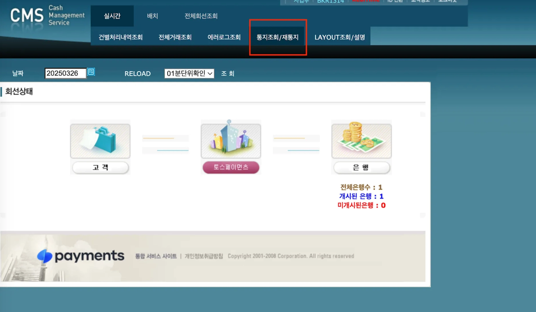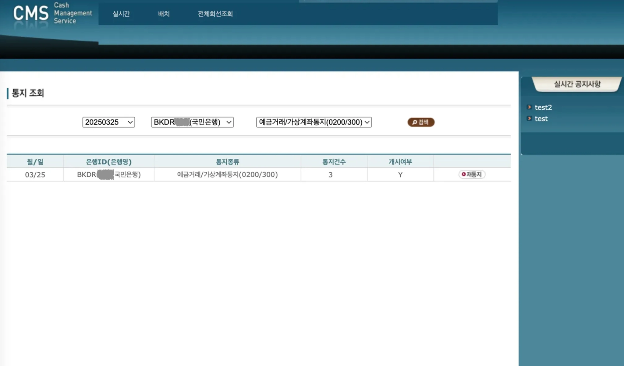 3) 재통지는 업무 개시된 은행만 가능합니다.