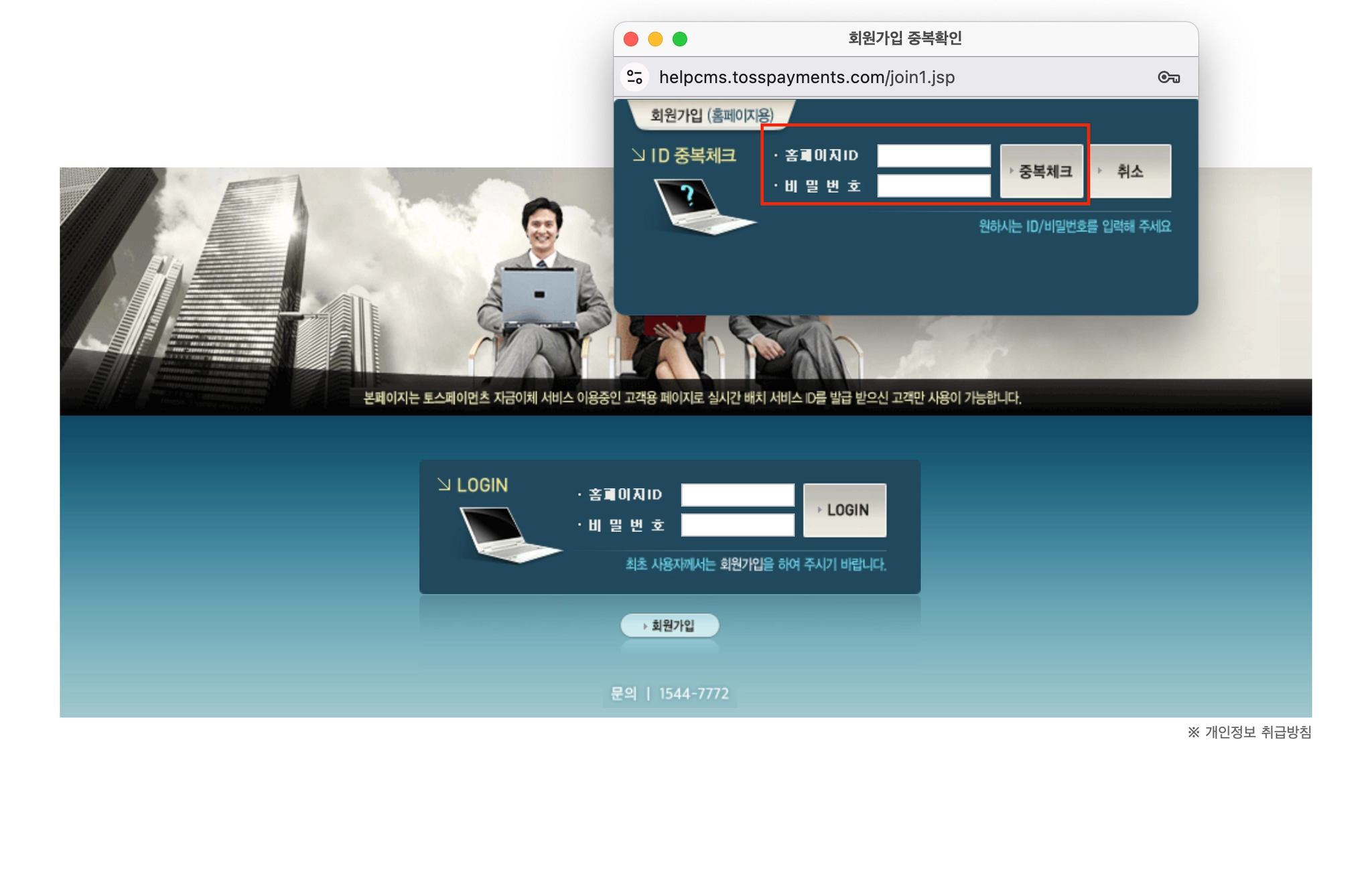 해당 페이지에 아직 회원가입이 되어 있지 않다면, 먼저 [회원가입]을 진행해 주세요.