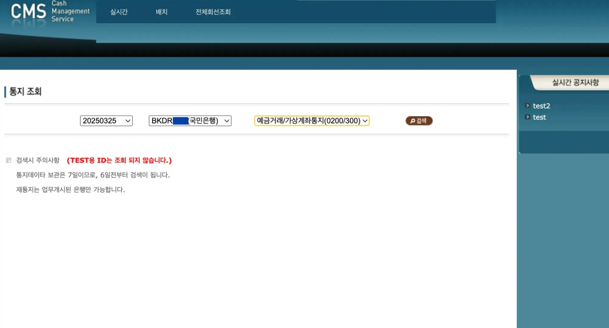 1) TEST 용 ID는 조회 되지 않습니다.