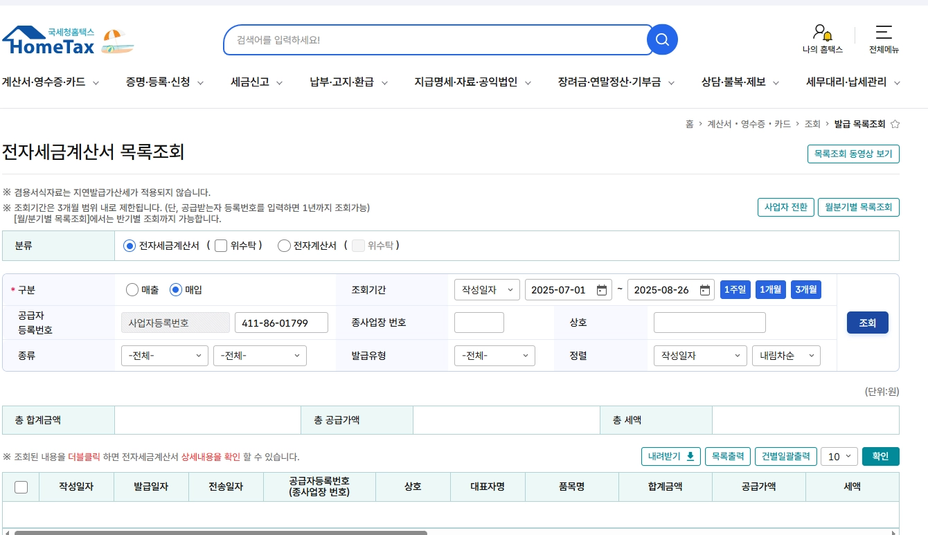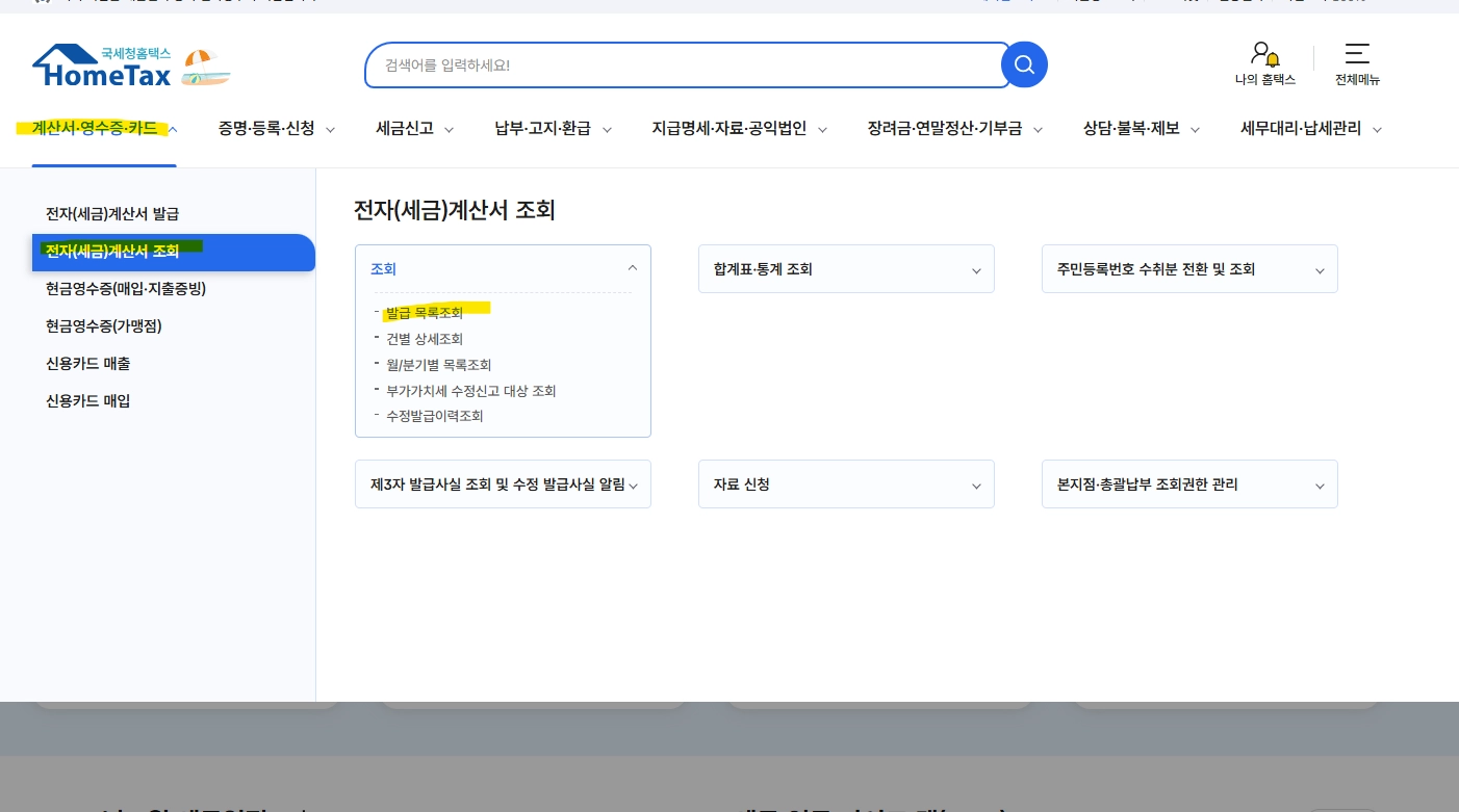 홈택스 세금계산서 조회 가이드